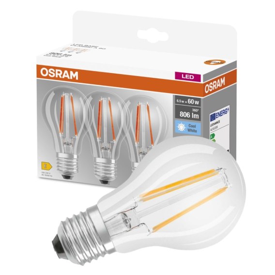 3PAK Żarówka LED E27 A60 6,5W = 60W 806lm 4000K Neutralna 360° OSRAM