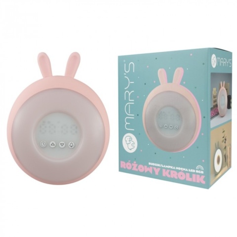 Nazwa produktu: Budzik lampka nocna różowy "Królik" LED RGB 3.1W