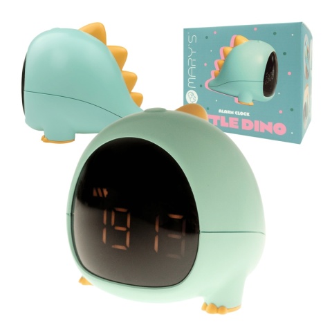 Zielony Dino to uroczy budzik z dużym cyfrowym wyświetlaczem LED, zasilany akumulatorem 1200 mAh – wytrzymuje do 14 dni pracy po 3 godzinach ładowania USB. Intuicyjny w obsłudze, bezpieczny i idealny dla najmłodszych.
