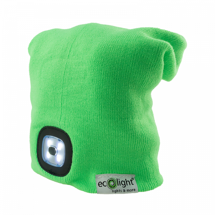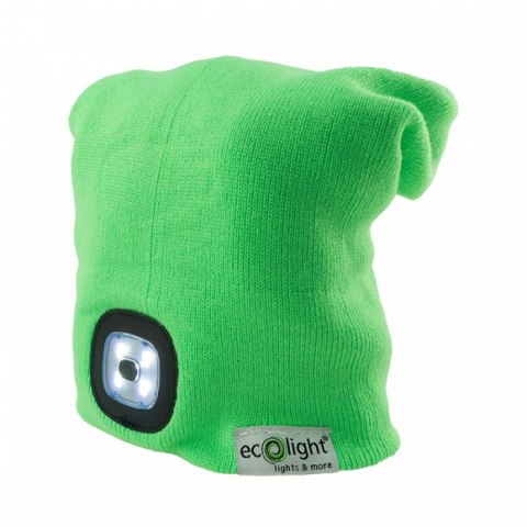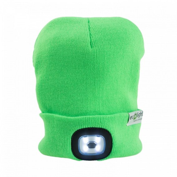 Czapka Zimowa z latarką LED Zielona 1W 6500K Ładowanie z USB
