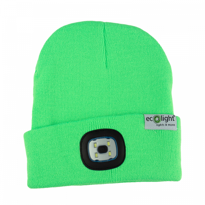 • Czapka Zimowa z latarką LED Zielona 1W 6500K Ładowanie z USB