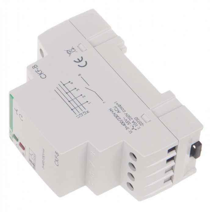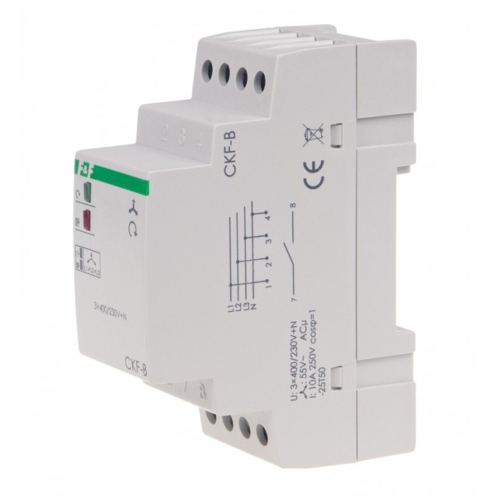 Czujnik kolejności i zaniku fazy CKF-B to urządzenie, które służy do zabezpieczania silników elektrycznych przed uszkodzeniami spowodowanymi zanikiem lub asymetrią napięć między fazami. Czujnik ten monitoruje napięcie w każdej fazie i w przypadku wystąpienia braku napięcia lub asymetrii, wyłącza silnik w celu ochrony przed uszkodzeniem.