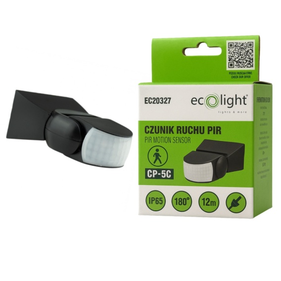 ⚡ Czujnik ruchu PIR CP-5C - czarny, uniwersalny do domu i firmy to inteligentne urządzenie, które automatycznie załącza oświetlenie po wykryciu ruchu — tylko wtedy, gdy jest to potrzebne. Dzięki temu zyskujesz wygodę, oszczędność energii i pewność, że światło działa wtedy, kiedy naprawdę jest potrzebne.