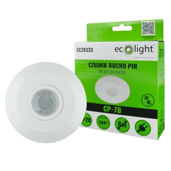⚡ Czujnik ruchu PIR CP-7B - biały to nowoczesne urządzenie do automatycznej kontroli oświetlenia. Po wykryciu ruchu czujnik uruchamia światło, zapewniając wygodę, bezpieczeństwo oraz oszczędność energii — zarówno w domu, jak i w przestrzeni użytkowej.