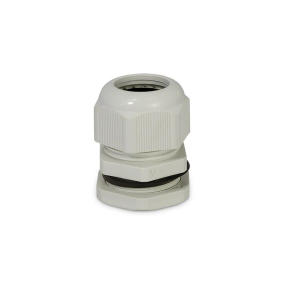 Dławiki metryczne przeznaczone są do uszczelniania przejść przewodów przez obudowy urządzeń elektrycznych. Wykonane z poliamidu 6.6, materiału odpornego na działanie czynników atmosferycznych - bardzo wytrzymałego, samogasnącego, wolnego od halogenów i fosforu. Nie zawierają dodatków silikonowych. Specjalna konstrukcja dławicy zapobiega skręceniu się kabla wewnątrz i zapewnia dużą wytrzymałość na zerwanie. Łatwe w montażu. Pozwalają na osiągnięcie stopnia ochrony IP 68 (klasa szczelności 10 bar wg. EN60529). Szeroki asortyment wielkości umożliwia mocowanie kabli o średnicy od 30mm do 38mm. Temperatura pracy: -40 st.C do +85 st.C (krótkotrwała do +120 st.C). Kolor szary (RAL 7035). Oferowane w komplecie z uszczelką i nakrętką.