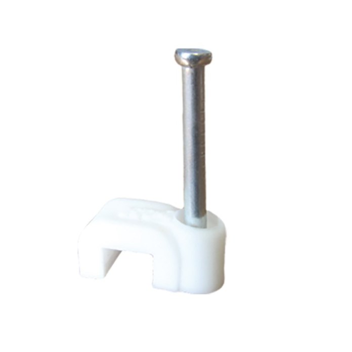 Uchwyty kablowe z wbitym gwoździem hartowanym typu "FLOP" do kabli o przekroju okrągłym i płaskim umożliwiają prosty i szybki montaż przewodów do ścian budynków. Uchwyty kablowe z gwoździem typu FLOP, przeznaczone są do mocowania przewodów lub poszczególnych żył kabla do podłoża za pomocą gwoździa. Mocowanie odbywa się poprzez wbicie hartowanego gwoździa do podłoża. Uchwyty tego typu stosuje się wtedy gdy zachodzi konieczność uzyskania szybkiego i pewnego zamocowania, szczególnie w podłożach drewnianych lub gazobetonowych. W przypadku wystąpienia konieczności przytwierdzenia przewodu do podłoża o wysokim stopniu twardości (np. beton) zaleca się stosowanie kołków rozporowych lub innego rodzaju uchwytów.
