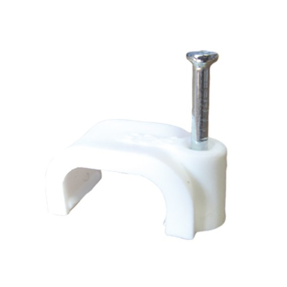 Uchwyty kablowe z wbitym gwoździem hartowanym typu "FLOP" do kabli o przekroju okrągłym i płaskim umożliwiają prosty i szybki montaż przewodów do ścian budynków.