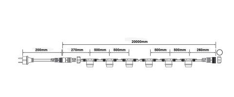 - Liczba oprawek: 40 x E27 (rozstaw co 50 cm)