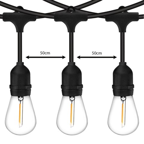 ⚡️Ta elegancka girlanda o długości 20 metrów posiada 40 punktów z gwintem E27 w odległości 50cm od siebie. Dzięki klasie szczelności IP44, możesz mieć pewność, że lampa jest odporna na warunki atmosferyczne, co sprawia że idealnie nadaje się do użytku zewnętrznego.