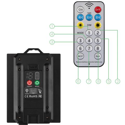 ✔️ Wbudowany przycisk ON/OFF umożliwia szybkie sterowanie bez użycia pilota.