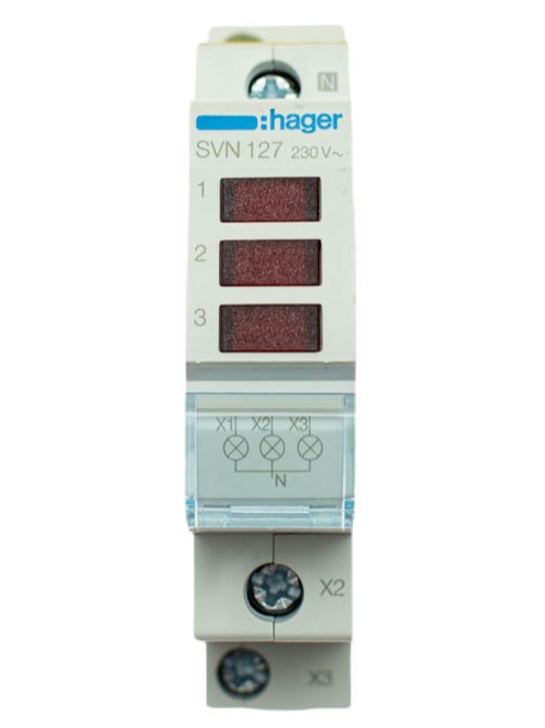 HAGER SVN127 to lampka sygnalizacyjna LED przeznaczona do sygnalizowania stanu fazowego w rozdzielniach elektrycznych. Posiada trzy światła czerwone, które oznaczają odpowiednio brak fazy, obecność fazy oraz przeciążenie fazy. Ta lampka umożliwia szybkie i łatwe monitorowanie stanu fazy w rozdzielniach elektrycznych, zapewniając bezpieczną i efektywną pracę.