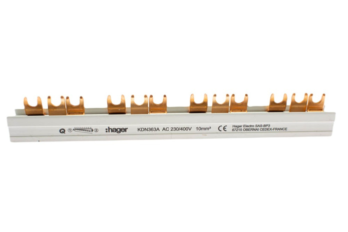 HAGER Szyna grzebieniowa widełkowa pozioma 3P 10mm2 12M