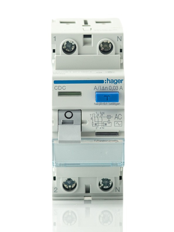 HAGER Wyłącznik różnicowoprądowy 1P+N 25A 30mA to konkretny typ RCD produkowany przez markę HAGER, jest on przeznaczony do ochrony przed porażeniem prądem i pożarami spowodowanymi awariami połączenia uziemienia.