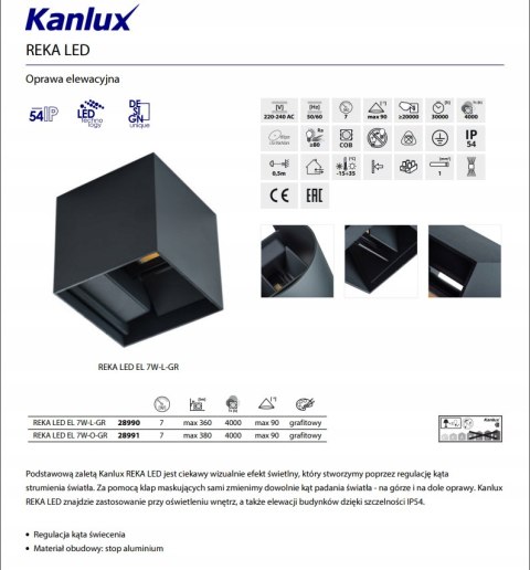 • Kanlux oprawa elewacyjna REKA LED EL 7W-L-GR 28990