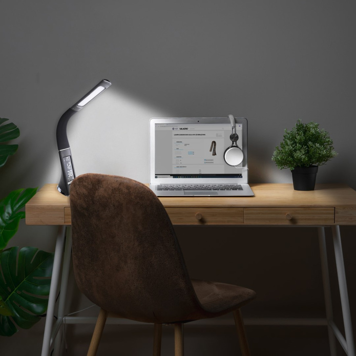 ⚡️Lampka biurkowa GALA 141 to elegancki i nowoczesny sposób oświetlenia miejsca pracy lub relaksu. Posiada zintegrowany z oprawą energooszczędny moduł LED o mocy 6 W, co odpowiada mocy 31 W tradycyjnego źródła światła. Dodatkowo, dzięki wbudowanemu wyświetlaczowi, lampka pokazuje aktualny czas i temperaturę.⚡️