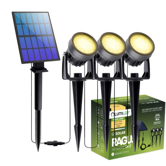 Lampa Solarna Ogrodowa LED 3000K IP65 Wbijana Czarna Regulacja 3x Reflektor