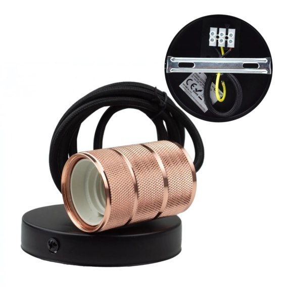 Lampa wisząca Ozdobna oprawa E27 Różowe Złoto przewód czarny Loft