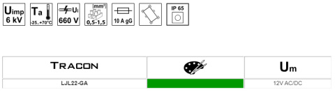 - Znamionowe napięcie pracy Ue: 12 - 12 V
