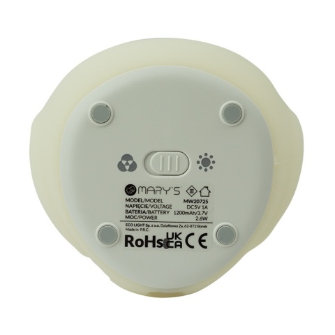 Miękki silikonowy korpus i elementy ABS czynią lampkę odporną na upadki, chłodną w dotyku i całkowicie bezpieczną dla najmłodszych.