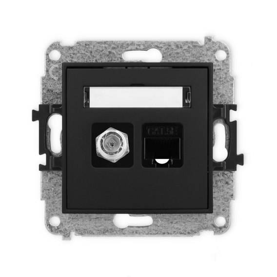 Mechanizm gniazda antenowego poj. typu F (SAT) + gniazda komp. poj. 1xRJ45, kat. 5e, 8-stykowy czarny mat