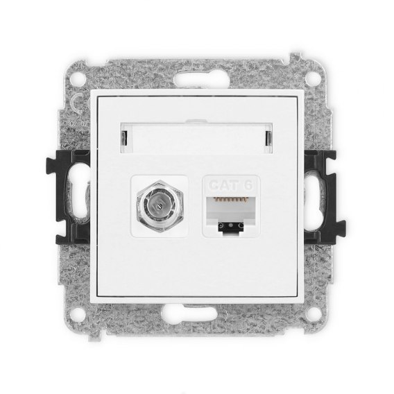 Mechanizm gniazda antenowego poj. typu F (SAT) + gniazda komp. poj. 1xRJ45, kat. 6, 8-stykowy