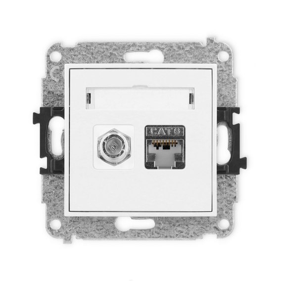 Mechanizm gniazda antenowego poj. typu F (SAT) + gniazda komp. poj. 1xRJ45, kat. 6 ekranowe, 8-stykowy