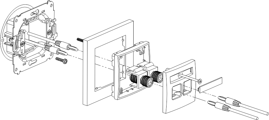 • Mechanizm gniazda głośnikowego pojedynczego (typu banan - czerwony i czarny, pozłacany, 4 mm2, skręcany) Szary mat