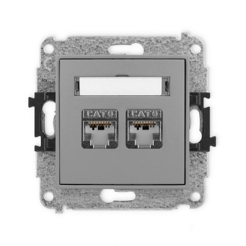 Mechanizm gniazda komputerowego podwójnego 2xRJ45, kat. 6, ekranowane, 8-stykowy Szary mat