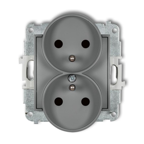 Mechanizm gniazda podwójnego do ramki z uziemieniem 2x(2P+Z) szary mat (przesłony torów prądowych)