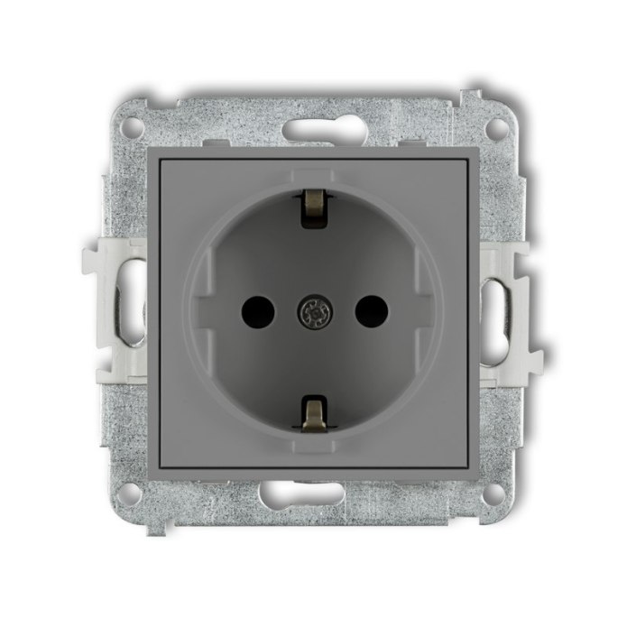 • Mechanizm gniazda pojedynczego z uziemieniem SCHUKO 2P+Z szary mat