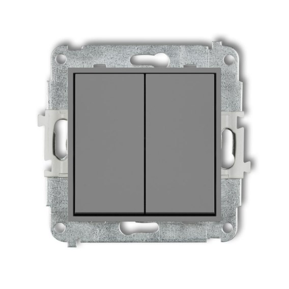 • Mechanizm łącznika jednobiegunowego ze schodowym szary mat (dwa klawisze bez piktogramów, wspólne zasilanie)