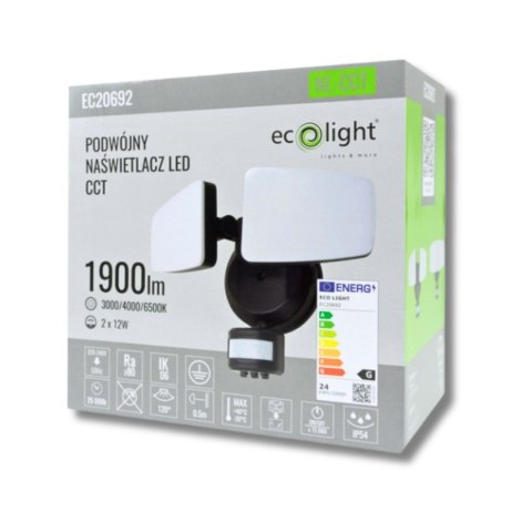 Naświetlacz Halogen LED 2x 12W Czujnik Ruchu IP54 2x 950lm Zmienna Barwa