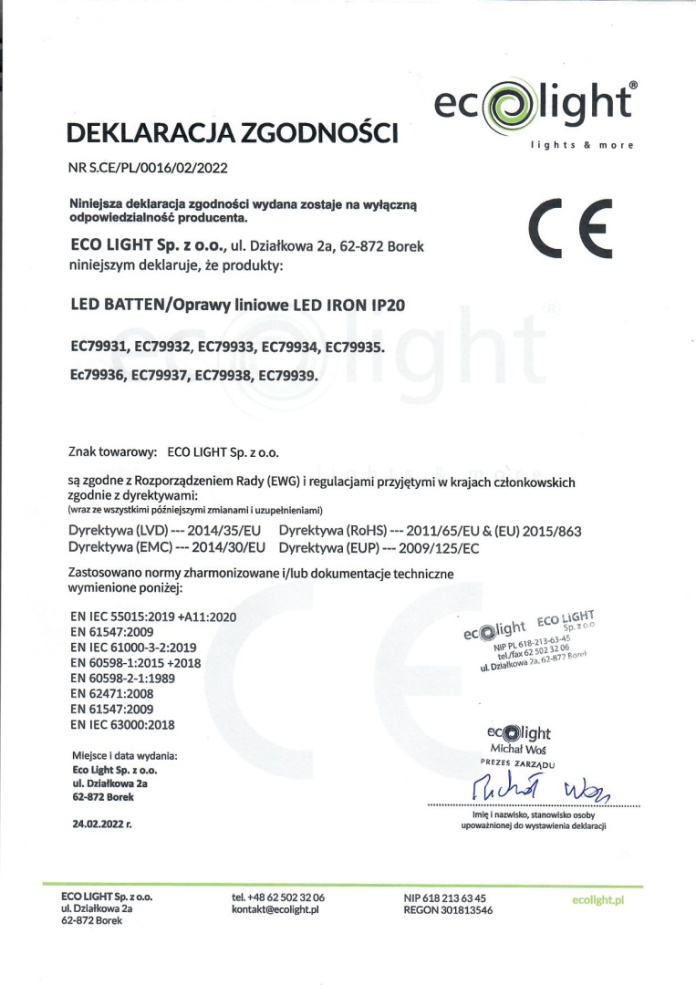OPRAWA LAMPA LED BATTEN IRON 60cm 18W IP20 4000K