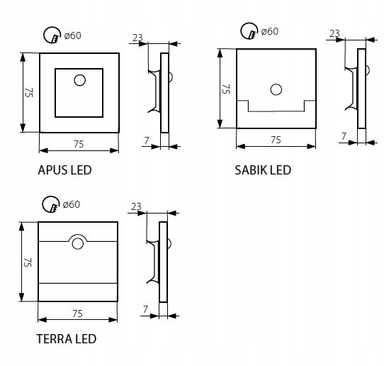 - Montaż: w puszce ∅60 lub w otworze ∅60
