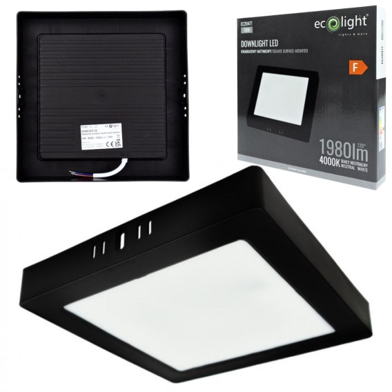 Panel LED 18W Natynkowy CZARNY Kwadratowy Neutralny 1980lm 4000K PLASTIKOWY