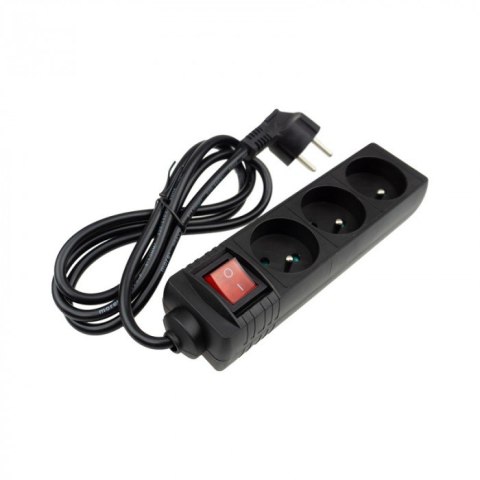 Przedłużacz 1,5m sieciowy z uziemieniem 3x1mm 3 Gniazda włącznik 13A Czarny