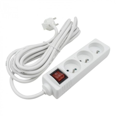 • Przedłużacz 5m sieciowy z uziemieniem 3x1,5mm 3 Gniazd włącznik 16A Biały