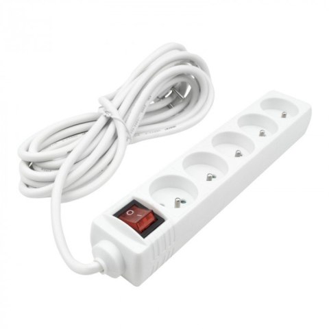 Przedłużacz 5m sieciowy z uziemieniem 3x1,5mm 5 Gniazd włącznik 16A Biały
