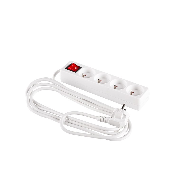 Przedłużacz sieciowy z uziemieniem i wyłącznikiem 5m 3x1mm 4 Gniazda 16A Biały