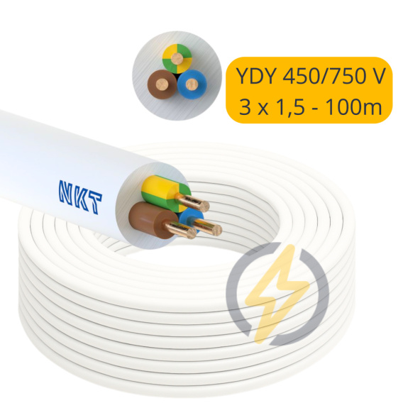 Przewód YDY 3x1,5 450/750V zakup po 100m NKT Cena za 1mb