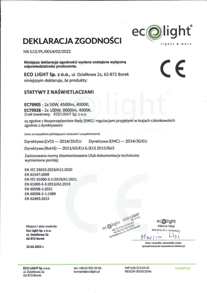 Podwójny statyw umożliwia swobodne ustawienie źródła światła w odpowiednim kierunku, co pozwala na zwiększenie efektywności oświetlenia oraz ułatwia wykonywanie precyzyjnych prac. Przewód o długości 3m pozwala na swobodne przemieszczanie się zestawu wraz z użytkownikiem.