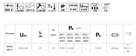 - Znamionowe napięcie sterujące: 220 - 240 V