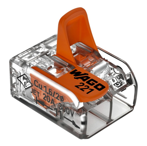 Szybkozłączka instalacyjna 2x0,14-4mm² WAGO jest to produkt przeznaczony do szybkiego i łatwego połączenia przewodów elektrycznych o przekroju od 0,14 do 4 mm². Szybkozłączka składa się z dwóch części: korpusu i zacisków, które są ze sobą połączone za pomocą zatrzasków. Dzięki temu, że szybkozłączka jest beznarzędziowa, połączenie przewodów jest bardzo proste i szybkie. Można to wykonać przy użyciu jedynie jednej ręki, a także łatwe do odłączenia. Wszystko co trzeba zrobić, to odciągnąć zaciski, by połączenie było rozłączone.