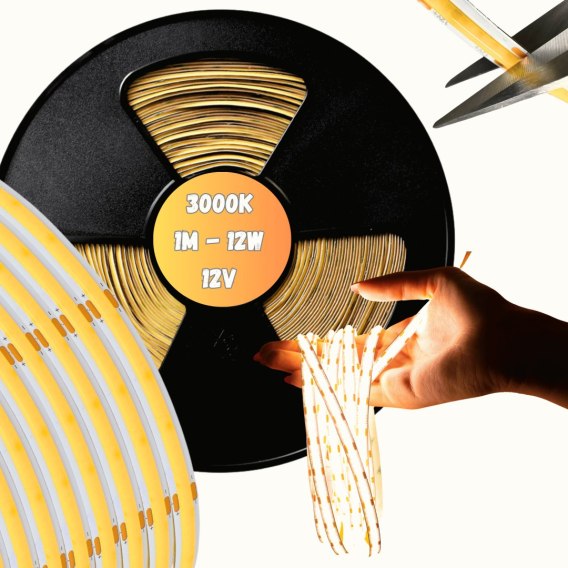 • Taśma LED 1m COB 12V 12W/m Barwa Ciepła 3000K Neon Homogeniczna