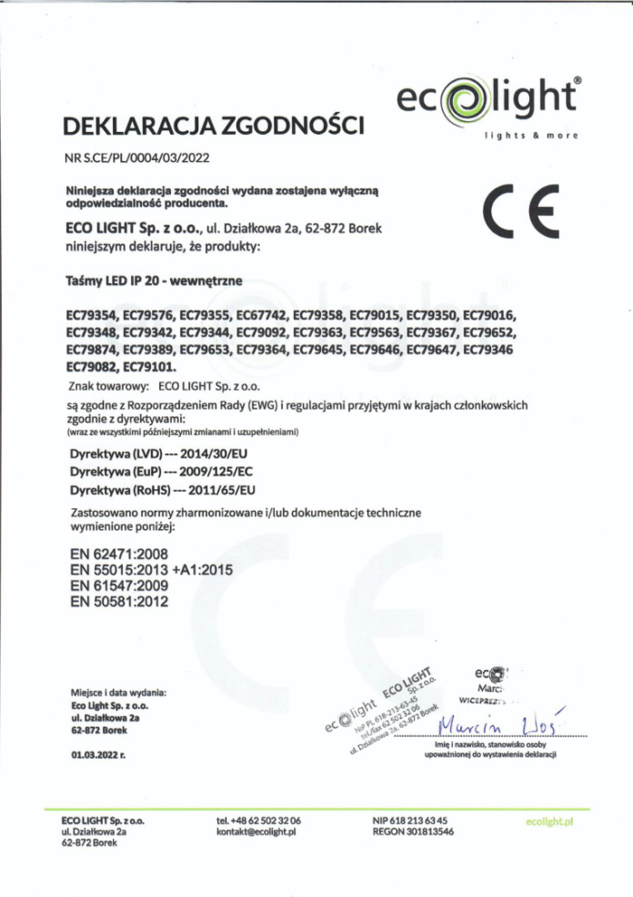 Strumień świetlny: 600lm/1m (+/- 5%)
