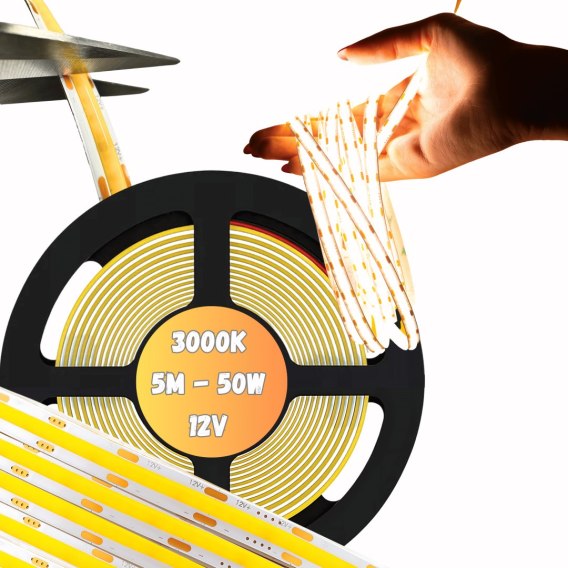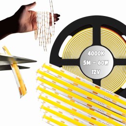• Taśma LED COB 12V 5M 50W rolki NEON pasek linia ciepła 1100lm/m 10W/m mocna