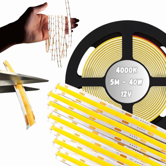 ⭐ Taśma LED COB IP20 8W/m 12V/DC Neutralna NW 4000K 5m 40W ROLKA NEON to nowoczesne rozwiązanie oświetleniowe, które zapewnia jednolitą linię światła bez widocznych punktów LED. Dzięki neutralnej białej barwie światła o temperaturze 4000K, taśma doskonale nadaje się do oświetlenia pomieszczeń roboczych, takich jak kuchnie, biura oraz pracownie.