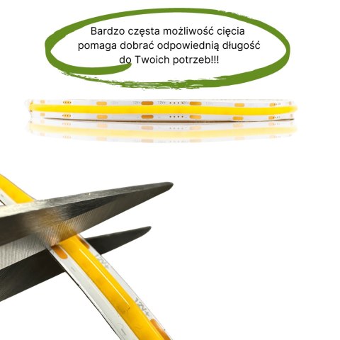 ⚡️ Technologia COB (Chip on Board) zapewnia jednolitą linię światła o kącie świecenia 120°, eliminując widoczne punkty LED. Dzięki stopniowi ochrony IP20, taśma jest przeznaczona do użytku wewnętrznego w miejscach suchych, takich jak kuchnie, biura, czy pracownie.