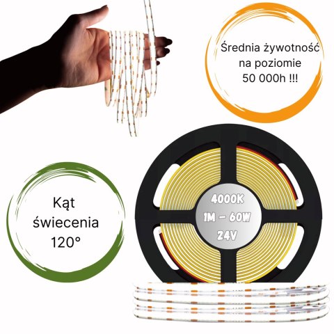 Taśma LED COB 24V 1m NEON pasek linia neutralna 1100lm/m 11W/m super mocna