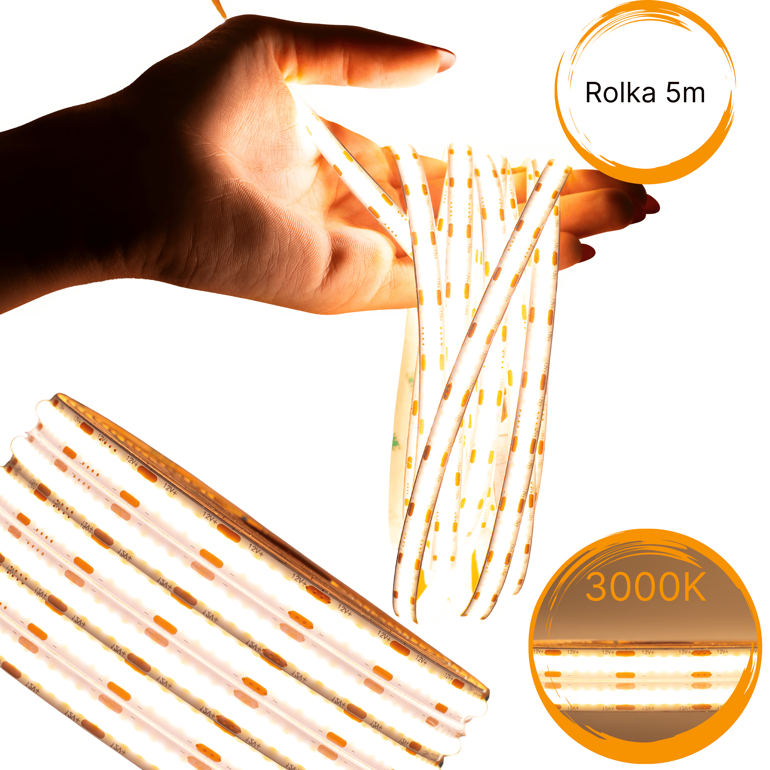 ✔️ Rodzaj taśmy LED: COB (Chip on Board) – jednolita linia światła bez przerw